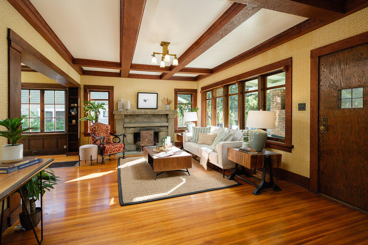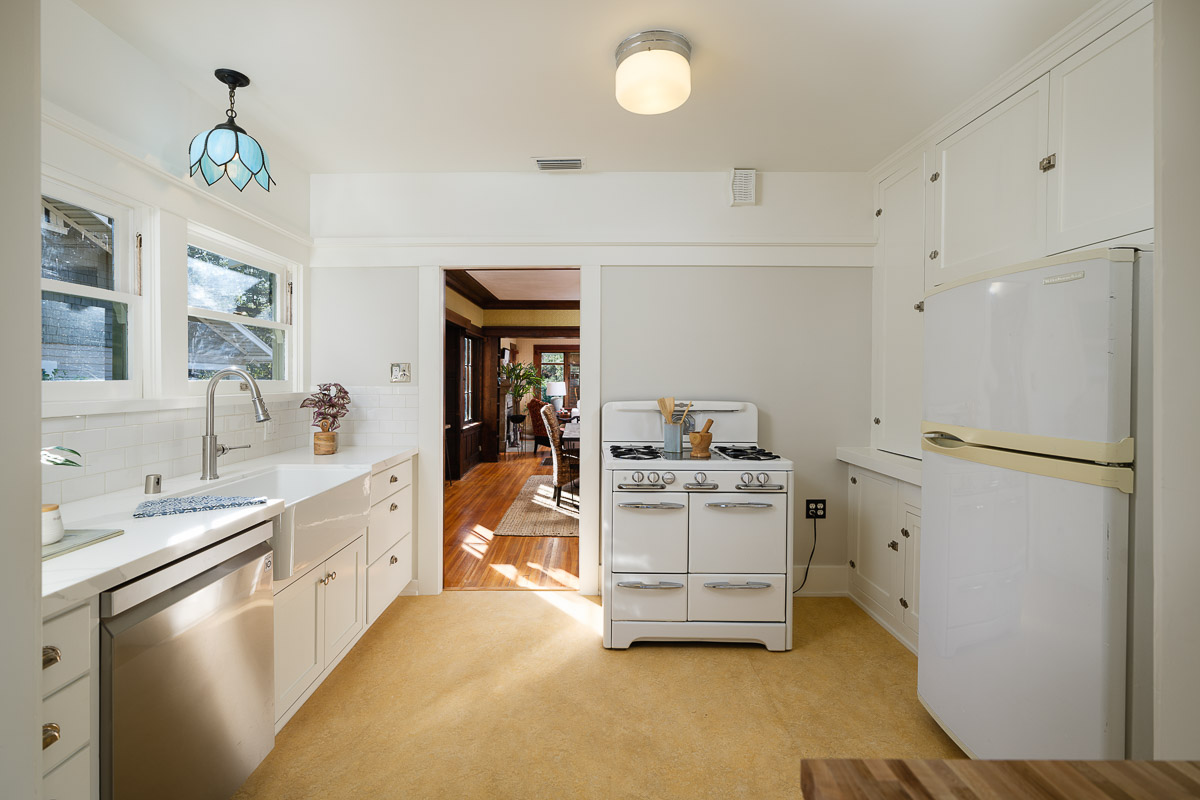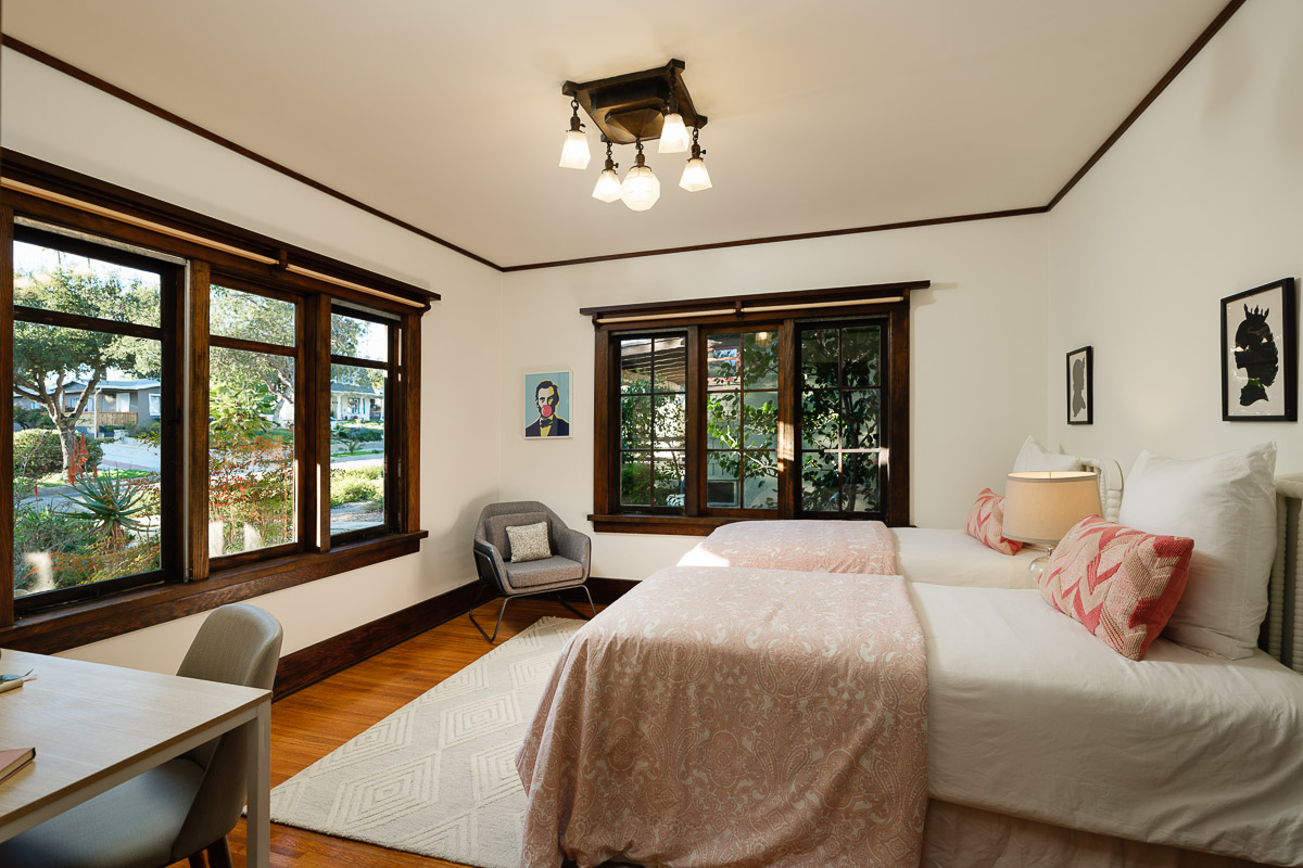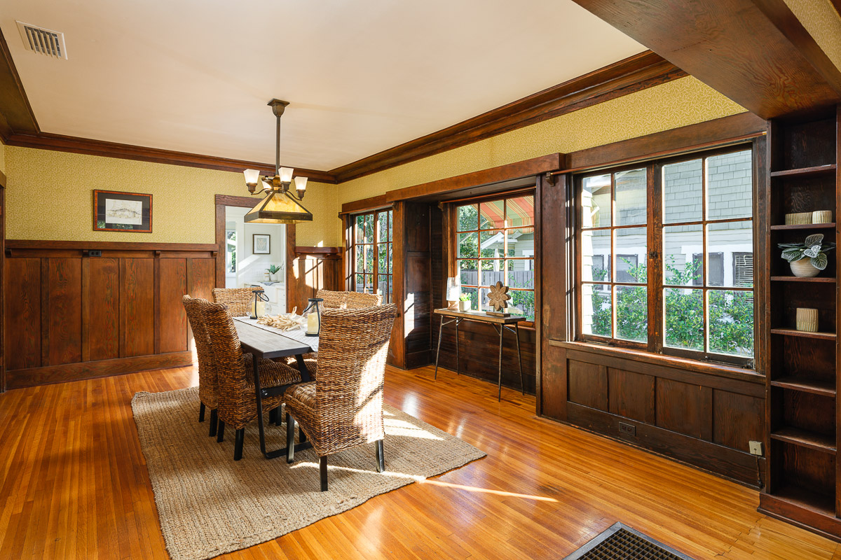 Welcome to this 1912 Craftsman treasure located in the heart of Bungalow Heaven, one of Pasadena’s most idyllic and architecturally significant neighborhoods. The three bedroom, two bath 1,320 square foot (measured) home has been painstakingly restored and is a tribute to the bygone artisanship of this sought-after style. You enter the residence via a lovely porch that sits under wide eaves and is slightly raised to offer views of the tree lined street as well as enhanced privacy. Once you step inside the tall front door, you will notice magnificent details including rich wood Maple floors, a box beam ceiling, hand-crafted built-ins, elegant picture or plate rails on the dark wainscoting, retractable roller screens, period hardware and fixtures, as well as one of the most stunning, decorative, cast stone fireplaces in town that has a stately relief showcasing the Santa Barbara Mission. In addition, the house has remodeled baths as well as a light and bright, renovated kitchen with an apron front sink, a gleaming antique stove and custom cabinetry that marries the artistry of the era with all the modern amenities so desired today.