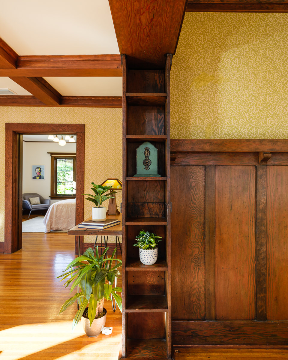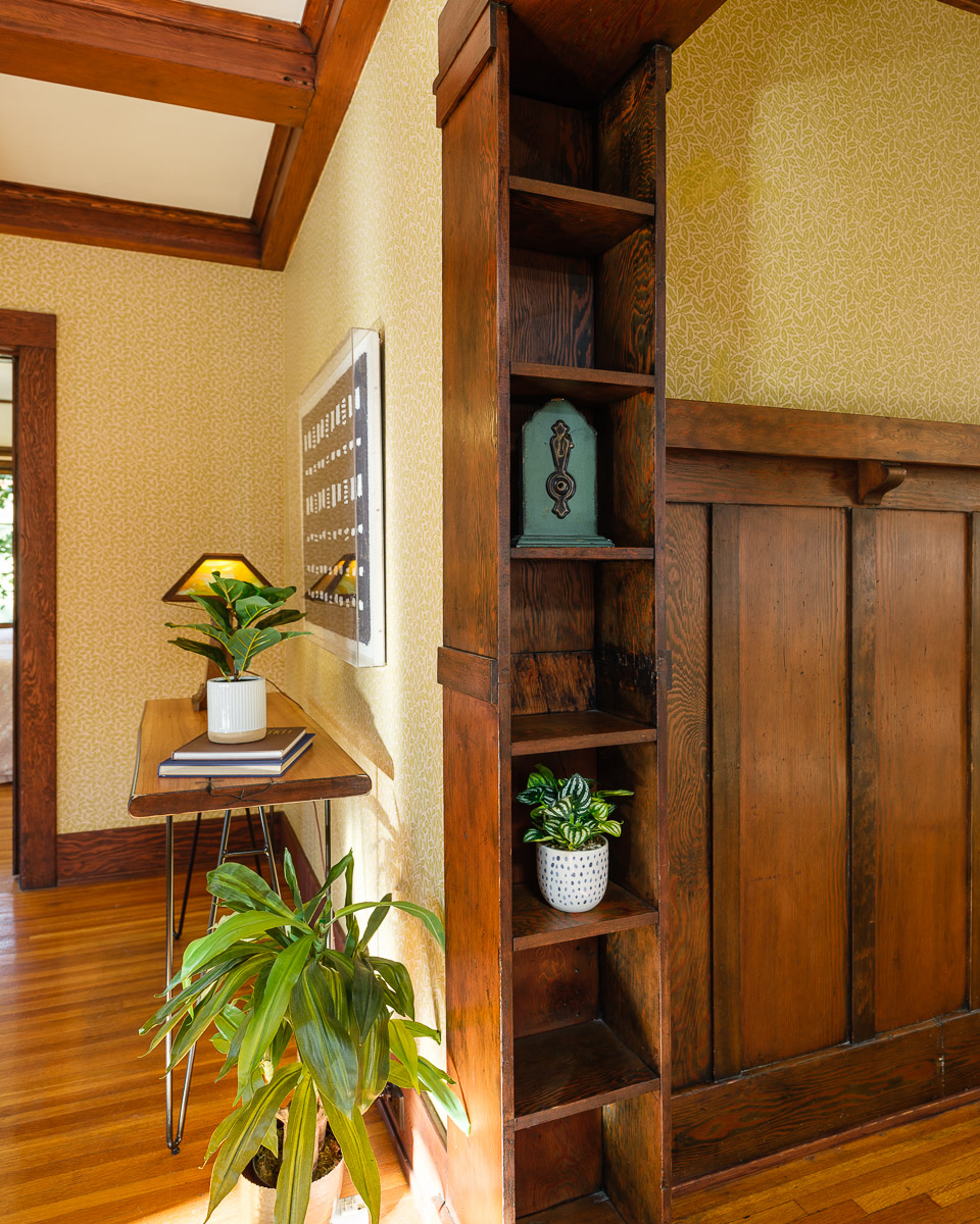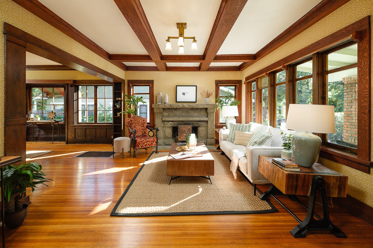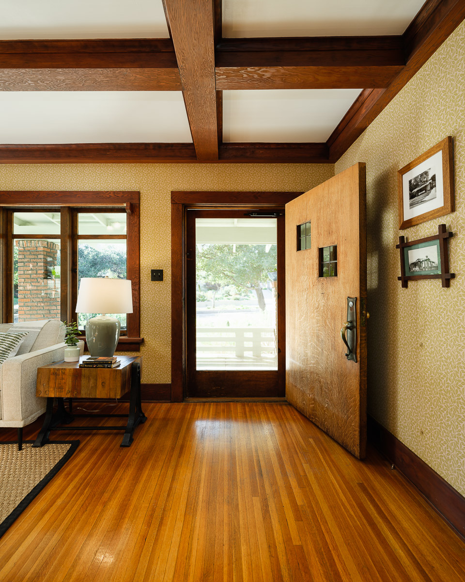 Welcome to this 1912 Craftsman treasure located in the heart of Bungalow Heaven, one of Pasadena’s most idyllic and architecturally significant neighborhoods. The three bedroom, two bath 1,320 square foot (measured) home has been painstakingly restored and is a tribute to the bygone artisanship of this sought-after style. You enter the residence via a lovely porch that sits under wide eaves and is slightly raised to offer views of the tree lined street as well as enhanced privacy. Once you step inside the tall front door, you will notice magnificent details including rich wood Maple floors, a box beam ceiling, hand-crafted built-ins, elegant picture or plate rails on the dark wainscoting, retractable roller screens, period hardware and fixtures, as well as one of the most stunning, decorative, cast stone fireplaces in town that has a stately relief showcasing the Santa Barbara Mission. In addition, the house has remodeled baths as well as a light and bright, renovated kitchen with an apron front sink, a gleaming antique stove and custom cabinetry that marries the artistry of the era with all the modern amenities so desired today.